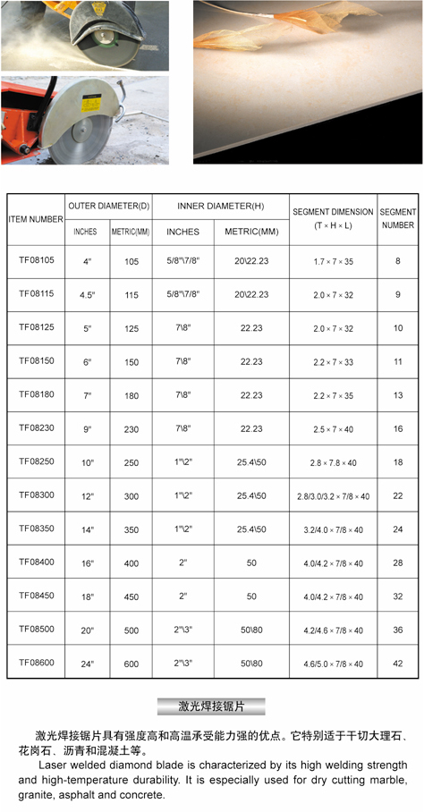 •   产品名称:激光焊接锯片